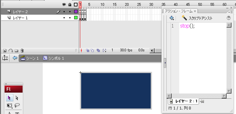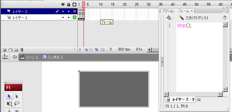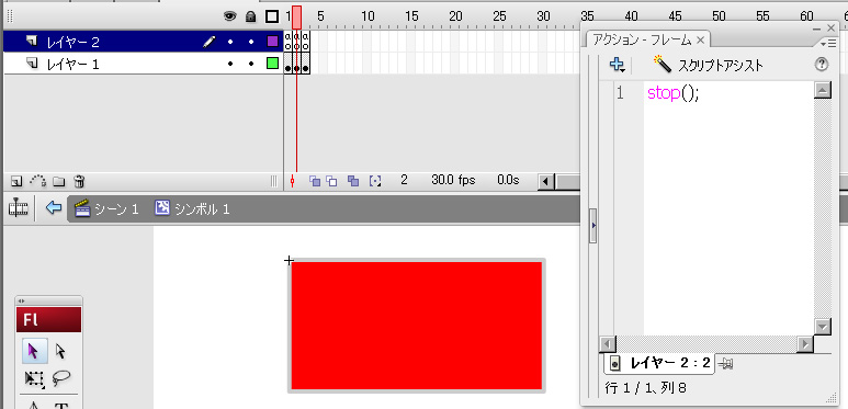 例えばボタンインスタンスに1フレーム目にボタンのノーマル状態、